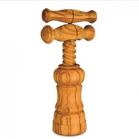Cavatappi a vite con doppio manico realizzato da intagliatori esperti in legno di olivo lavorato manualmente. Prodotto Dolfi. La selezione del legno per la produzione viene fatta accuratamente da personale specializzato ed esperto per offrire prodotti finiti di alta qualità. Il lungo processo di essiccazione viene effettuato in forni climatizzati che stabilizzano il materiale ed evitano eventuali spaccature. Il design semplice, la particolare venatura del tipo di legno, rendono l’oggetto utilizzabile anche in ambienti prettamente rustici.