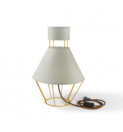 Lampada da tavolo modello lanterna della linea Baloon di Atipico. La struttura del prodotto è realizzata da un tondino di ferro verniciato a polvere e il paralume è in cotone o lino. La lampada è disponibile in un’unica misura e in quattro combinazioni di colore. la lampada fa parte della collezione Baloon composta da tre modelli. L’impianto elettrico è certificato da marcatura CE ed è consigliato l’utilizzo di una lampadina a basso consumo con attacco E20 e max 42W. La lampadina non è inclusa nella confezione