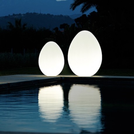 Dino è la lampada da terra a forma di un grande uovo, può illuminare gli spazi con ironia ed eleganza. Prodotta interamente con la tecnica innovativa dello stampaggio rotazionale, in materiale termoplastico di ultima generazione, resistente alle abrasioni, agli urti ed è impermeabile. Dallo stile contemporaneo, è facilmente adattabile a grandi ambienti sia interni che esterni di casa, saloni, zone living, bordi piscina o giardini. Altrettanto indicata indicata per impreziosire luoghi per eventi o cerimonie, hall o dehors di hotel, ristoranti o bar, dall’atmosfera elegante. La lampada è corredata di certificazione relativa alla normativa Comunitaria. E’ alimentata a mezzo cavo, con protezione IP55. Consigliamo di inserire nell’apposito bulbo, una lampada a risparmio energetico da 65W (non inclusa).
