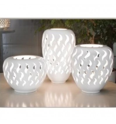 Lampada dal design originale e creativo, realizzata in maiolica bianca prodotta da Grego Ceramiche. La realizzazione dell’oggetto viene effettuata in più fasi, dalla realizzazione del calco/stampo in gesso con la conseguente colatura del liquido ceramico, alle fasi di cottura ad alta temperatura (circa 1000°) e le varie rifiniture, tutto con tecniche eseguite a mano da abili maestri modellatori. La lavorazione a mano del prodotto lo rende unico, di alta qualità e pregio, adattabile a qualsiasi ambiente e tipo di arredamento.
