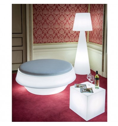 Pivot è la lampada da terra della collezione Slide, progettata per un perfetto connubio tra la forma moderna conica della base e la forma classica svasata del paralume. La particolare texture in rilievo del paralume, lo arricchisce in modo elegante. Prodotta interamente con la tecnica innovativa dello stampaggio rotazionale, in materiale termoplastico di ultima generazione, resistente alle abrasioni, agli urti ed agli agenti atmosferici. Adatta a creare ambienti suggestivi, è indicata per impreziosire gli spazi sia interni che esterni di casa, zone living, saloni, bordi piscine, giardini. Altrettanto per locali destinati al pubblico, luoghi per eventi o cerimonie, hall o dehors di hotel, ristoranti, dall’atmosfera elegante. La lampada è corredata di certificazione relativa alla normativa Comunitaria. E’ alimentata a mezzo cavo, con protezione IP55. Consigliamo di inserire negli appositi due bulbi una lampada a risparmio energetico da 25W cadauna (non inclusa).