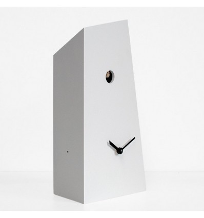 L’orologio da tavolo o da parete Monolith è realizzato da un blocco monolitico asimmetrico in cui è ricavata la casetta dell’uccellino. il prodotto, nei colori bianco e nero, è realizzato in legno verniciato con vernici atossiche, mentre nella versione bronzo nero è realizzato in legno rifinita con una tinta a base di metallo liquido che lo rende unico. Le lancette, asimmetriche, completano il quadrante. Il movimento del cucù è di manifattura tedesca e di alta qualità, alimentato da due batterie. E’ presente inoltre un sensore che permette al cucù di non suonare in assenza di luce, inoltre un pulsante permette di regolare l’intensità del suono del cucù. Il prodotto, si presenta raffinato ed elegante, dalle linee semplici ma originali allo stesso tempo. Si adatta quindi, ad ogni ambiente, sia in casa che in ufficio ed è perfetto anche come idea regalo.