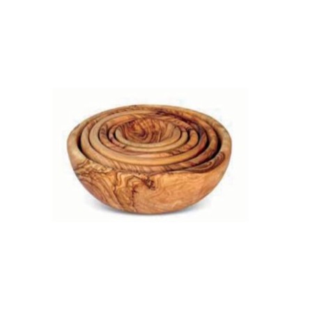 Set ciotole tonde composto da 6 pezzi di diverse misure, prodotto utilizzando legno di olivo che con la sua caratteristica robustezza rende i prodotti di assoluta qualità, la lavorazione a mano eseguita da esperti intagliatori ne fa un oggetto unico. La iniziale selezione accurata del legno utilizzato, la lunga stagionatura in forni climatizzati, conferiscono al prodotto assoluta qualità di resistenza ed evita eventuali successive spaccature. la venatura marcata, caratteristica del legno di olivo, lo rende molto adattabile anche ad ambienti rustici.