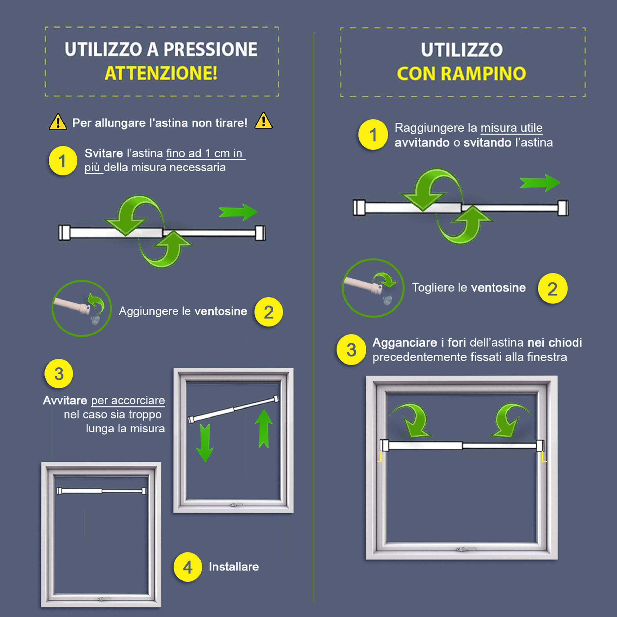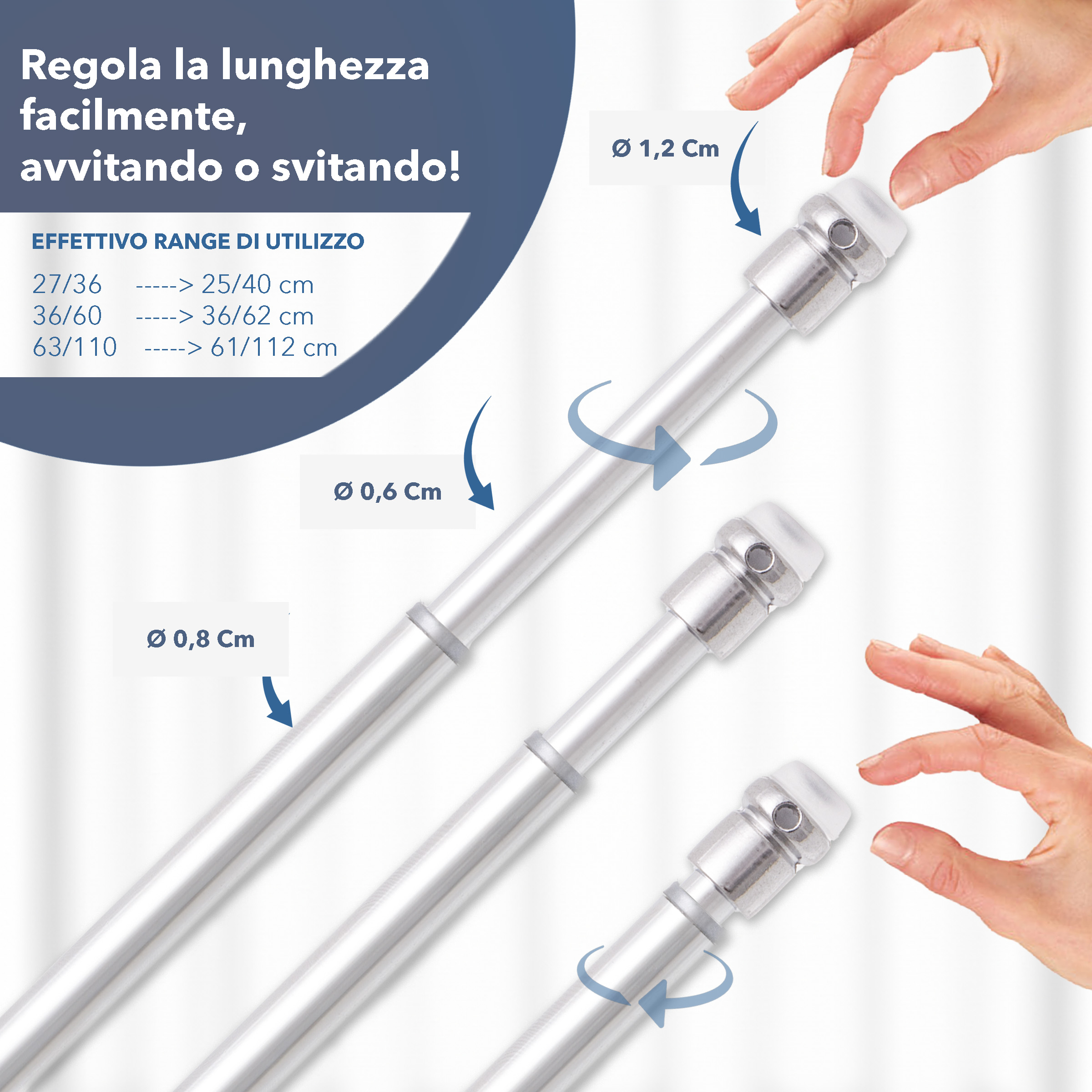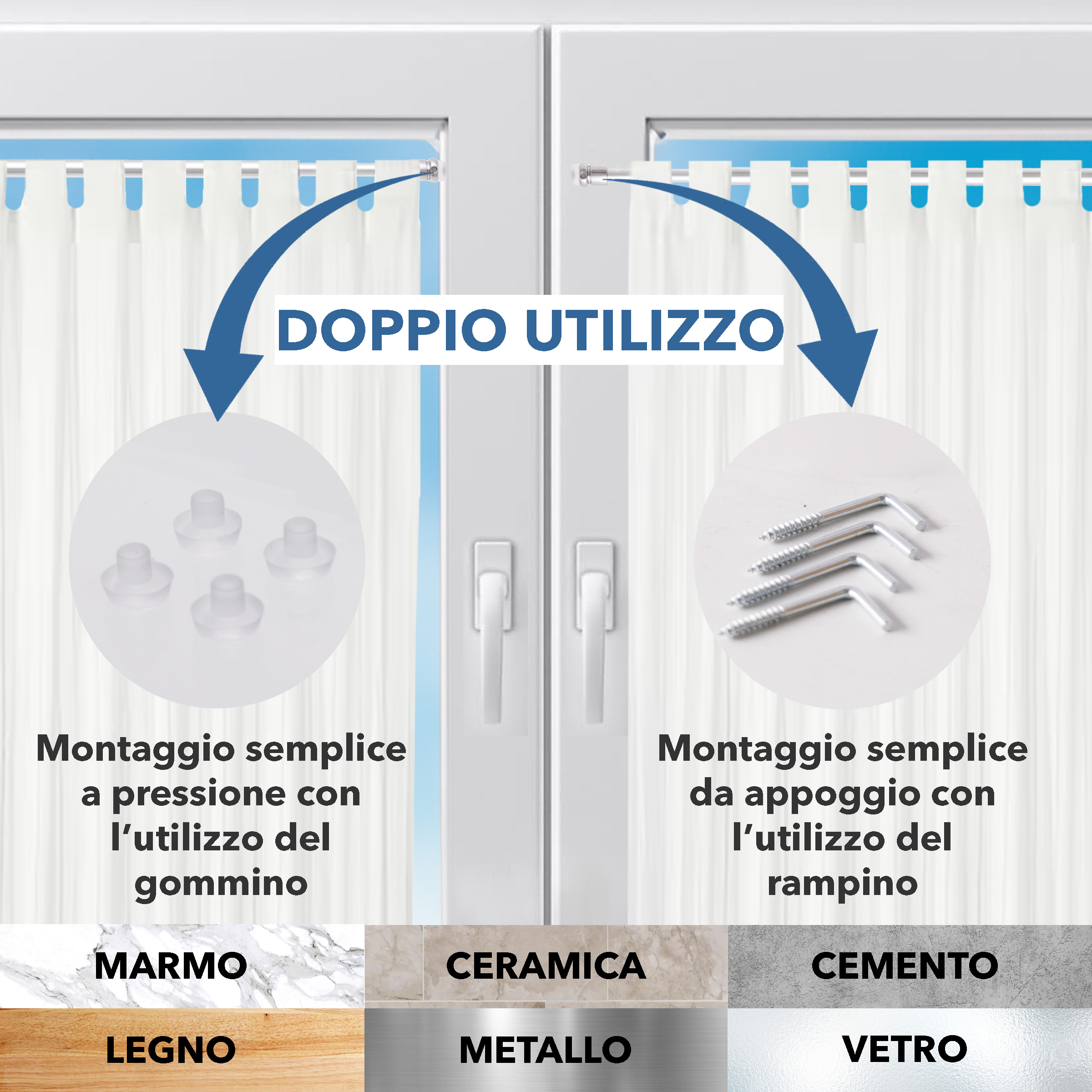 Coppia Astine per Tende Tendine a molla vetro REGOLABILI Bastoni pressione AST