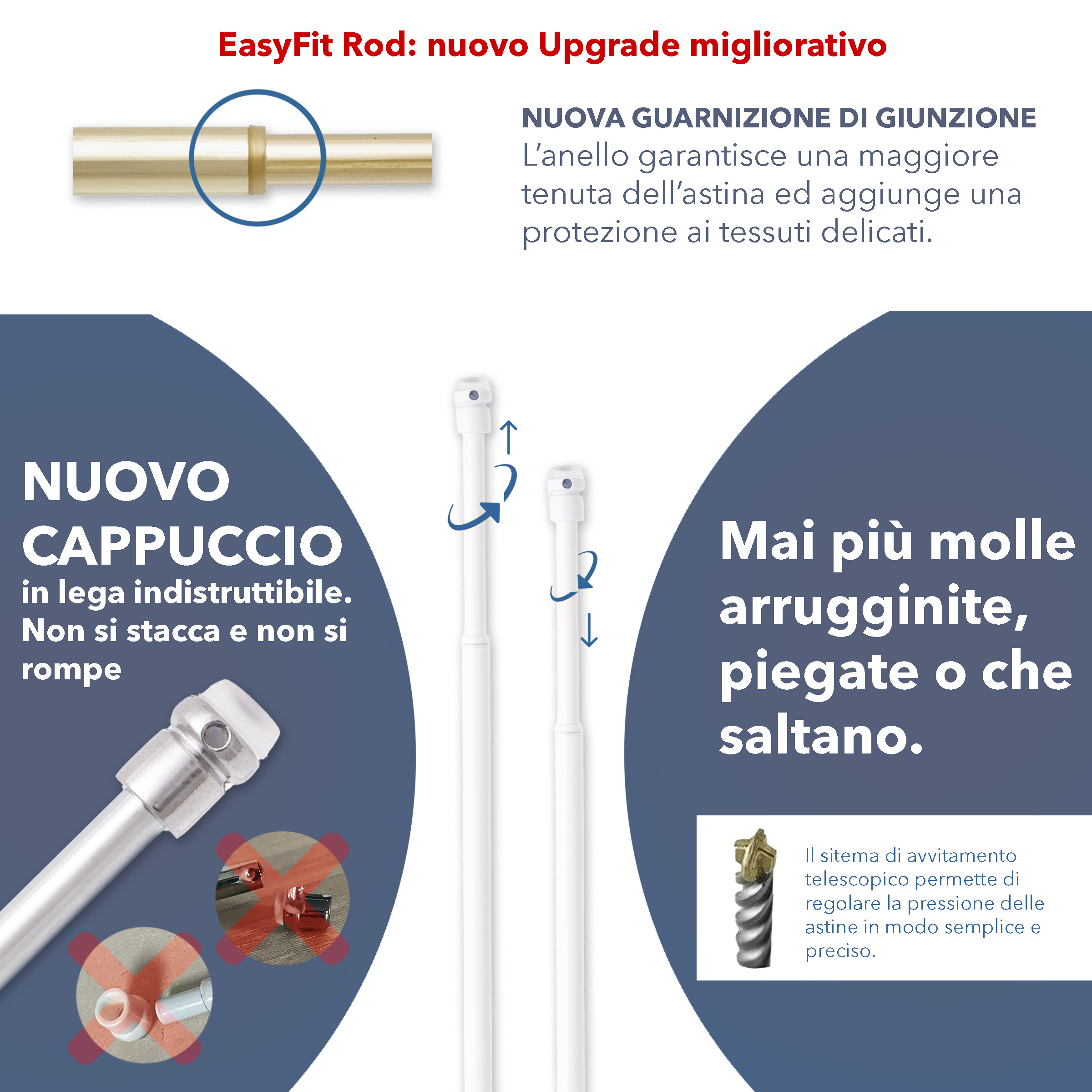 L’astina grazie alla pressione costante garantita dal sistema svita avvita permette di adattarsi facilmente a qualsiasi materiale.