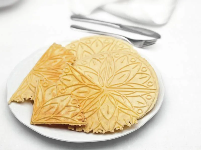 La nostra biscottiera elettrica con lo stampo/ferro a fiore realizza cialde sottili con disegni particolari che rendono unica ogni cialda.