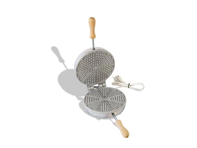 Una biscottiera elettrica con stampo per realizzare 8 piccole cialde a forma di cuore ideali per guarnire gelato, gelati e creme.