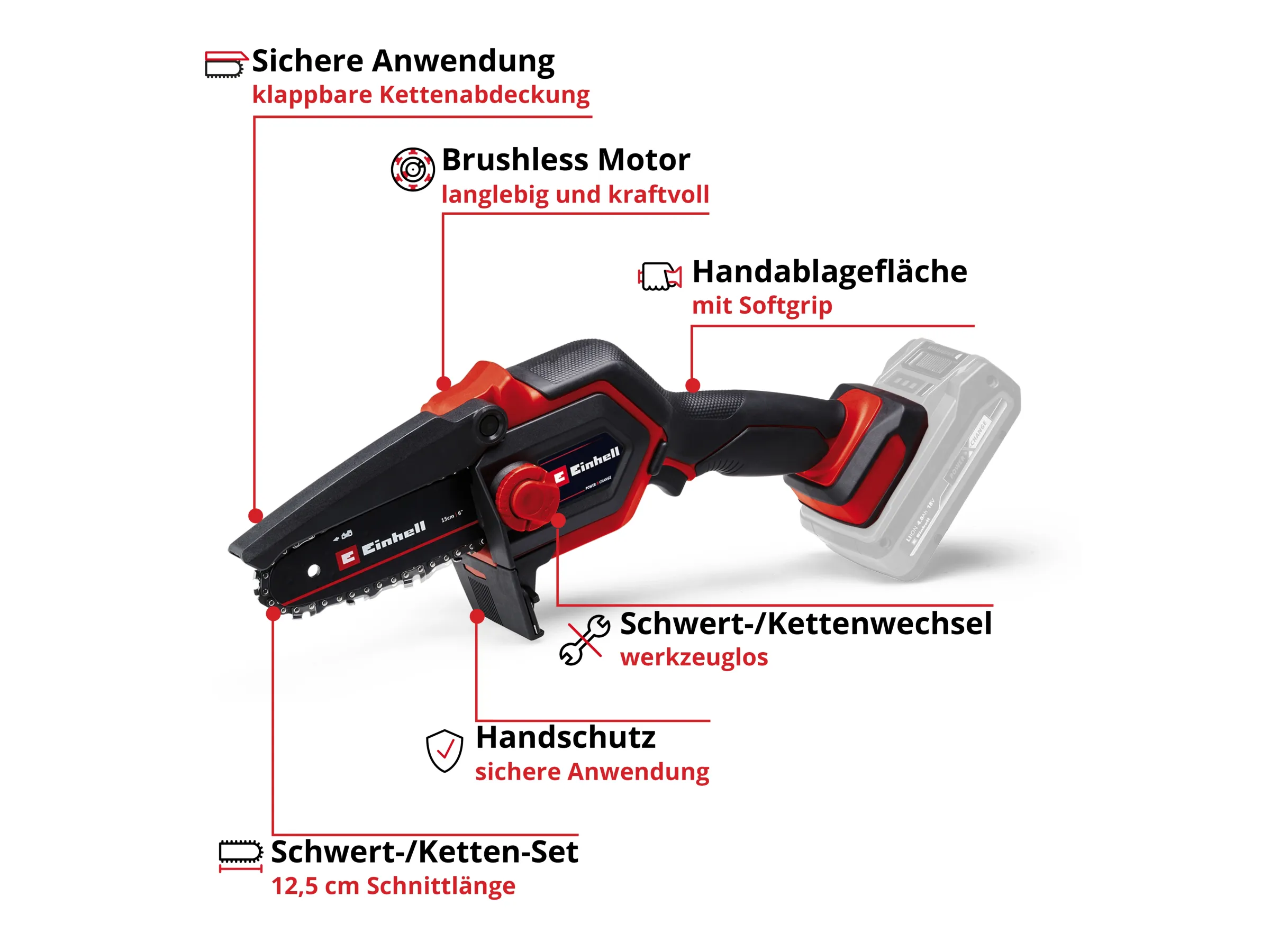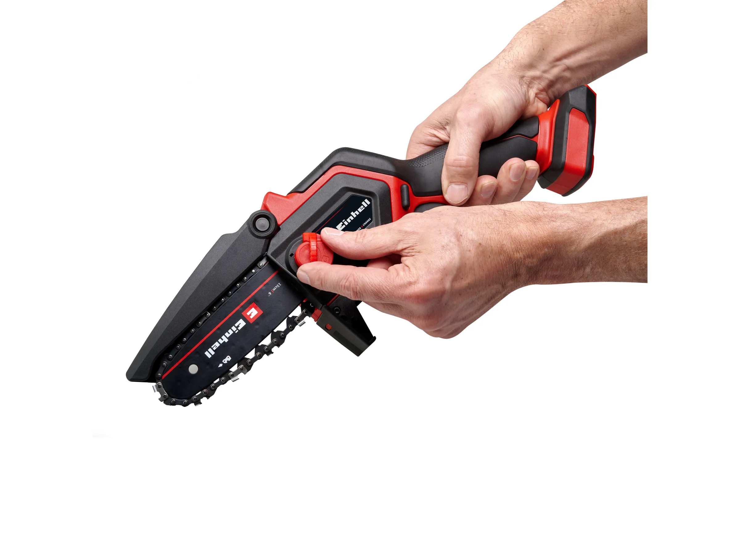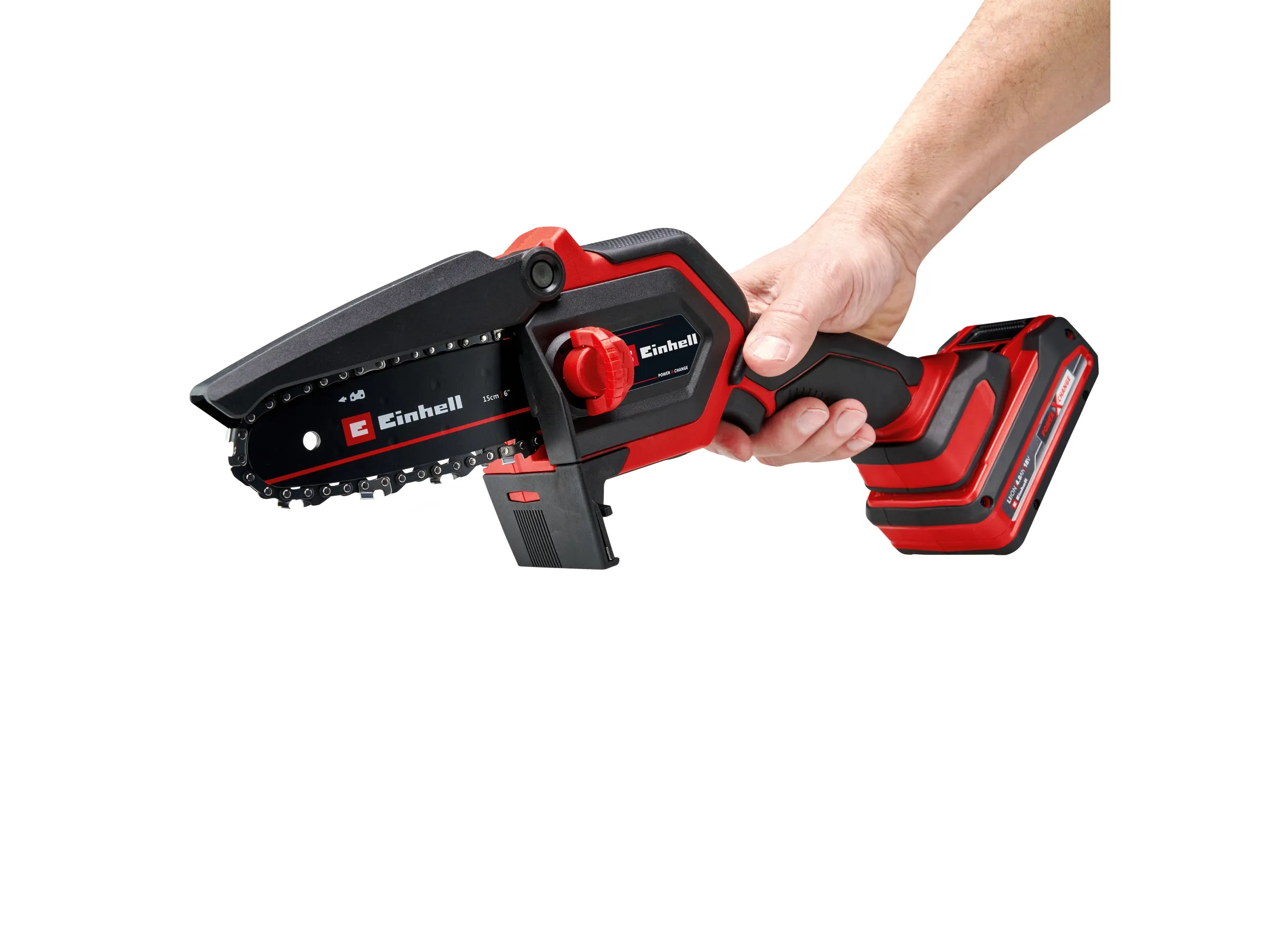 Il potatore a batteria Einhell GE-PS 18/15 Li BL-Solo è un pratico aiuto per potare e modellare alberi e cespugli, nonché per triturare i rifiuti verdi e tagliare tronchi squadrati più piccoli. Grazie alla batteria, la sega compatta può essere utilizzata in qualsiasi momento indipendentemente dalla fonte di alimentazione e offre la massima libertà di movimento. Motore brushless, lunghezza lama 15,8 cm, velocità catena 4,8 m/s, peso leggero e compatto. Ideale per potatura e modellatura di alberi e cespugli, triturazione di rifiuti verdi e taglio di tronchi squadrati più piccoli. Senza fili, flessibile, funzionamento silenzioso. La batteria consente un utilizzo in totale libertà, senza dipendere da una fonte di alimentazione esterna.