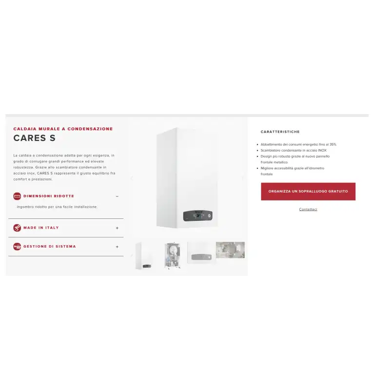 Ariston Cares S 24 cod. 3301637 è la caldaia murale a condensazione a tiraggio forzato da 24 kW e in classe A per il riscaldamento e produzione di acqua calda sanitaria. Equilibrio perfetto tra comfort e prestazioni grazie alla tecnologia a condensazione ad alta efficienza. Il prodotto è in grado di regolare la propria potenza per mantenere la temperatura interna a livello desiderato