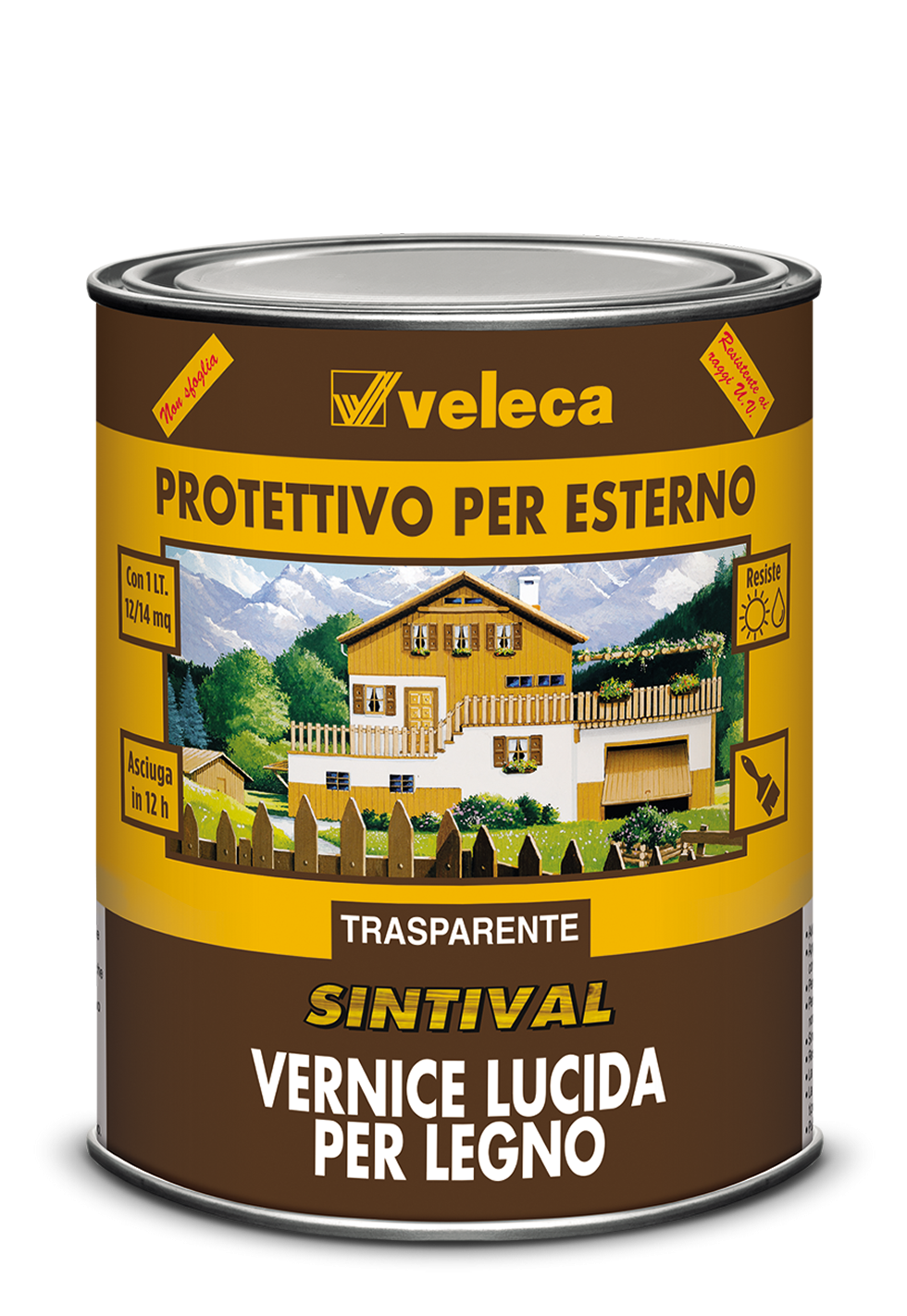 VERNICE PROTETTIVA CON FINITURA LUCIDA Sintival Lucida è una vernice trasparente a protezione totale, indicata per la verniciatura finale del legno posto all’esterno che è già stato trattato con impregnante per legno. Prodotto ideato per la verniciatura finale di persiane, porte, finestre, balconi e tutti gli oggetti, costruzioni e/o strutture di legno esposti in esterno all’acqua ed al sole anche in ambienti particolari quali mare ed alta montagna. Sintival è formulata con resine ed additivi speciali che proteggono il legno dall’azione devastante degli agenti atmosferici, delle intemperie e dei raggi ultravioletti; è quindi ideale per il trattamento di tutti gli oggetti ed i manufatti di legno che necessitano un’ottima protezione superficiale. Sintival aderisce perfettamente su tutte le superfici e forma una sottile pellicola trasparente tanto elastica che riesce a seguire i movimenti tipici delle strutture e degli oggetti di legno posti all’esterno. Con l’applicazione di Sintival, si chiudono i pori del legno; la superficie trattata risulta piena e morbida al tatto, idrorepellente, di facile pulizia e non assorbe lo sporco. La pellicola protettiva non sfoglia, ma si consuma lentamente nel tempo. Sintival mette in risalto la naturale bellezza del legno e la mantiene nel tempo.